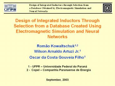 Jr.1 Oscar da Costa Gouveia Filho1 1 - UFPR