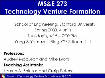 1MSE 273 Technology Venture Formation