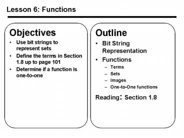 Title: Lesson 6: Functions