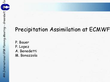 1Precipitation Assimilation at ECMWF P. Bauer P.