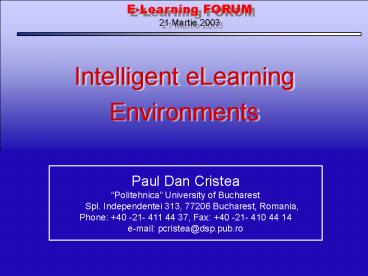 <Notice: Removed> Intelligent eLearning Environments PowerPoint PPT Presentation