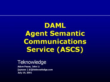 DAML Agent Semantic Communications Service (ASCS) PowerPoint PPT Presentation