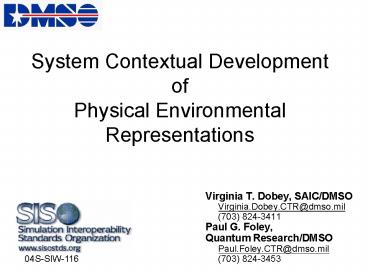 - Virginia T. Dobey, SAIC/DMSO