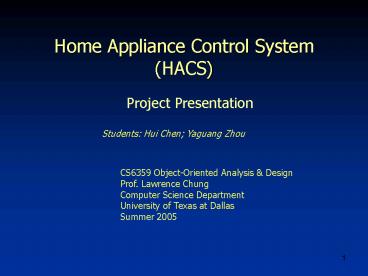 Home Appliance Control System HACS PowerPoint PPT Presentation