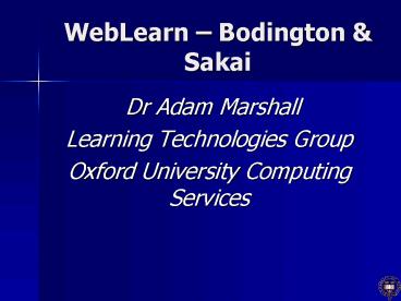 • Based on Bodington OSS (http//tinyurl.com/2ldmny