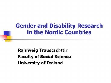 Gender and Disability Research in the Nordic Countries PowerPoint PPT Presentation