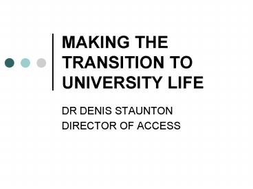 Title: MAKING THE TRANSITION TO UNIVERSITY LIFE