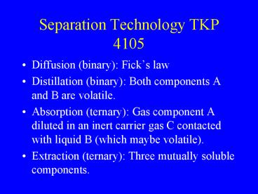 <Notice: Removed> Separation Technology TKP 4105 PowerPoint PPT Presentation