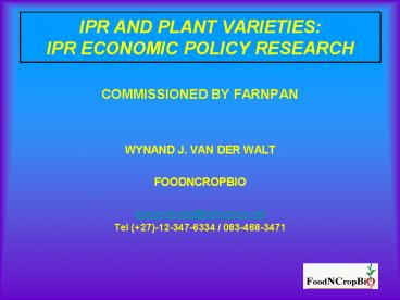 IPR AND PLANT VARIETIES: IPR ECONOMIC POLICY RESEARCH PowerPoint PPT Presentation