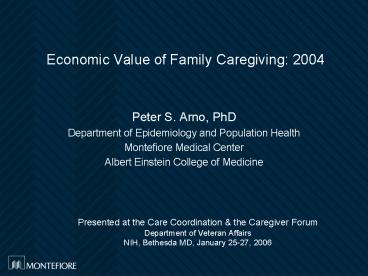 Economic Value of Family Caregiving: 2004 PowerPoint PPT Presentation