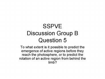 Title: SSPVE Discussion Group B Question 5