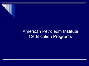 American Petroleum Institute Certification Programs PowerPoint PPT Presentation