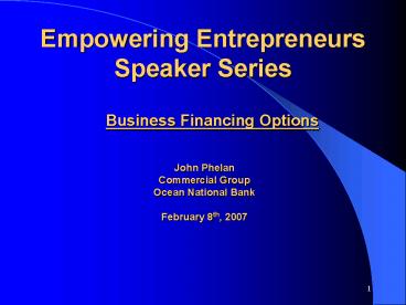 1Empowering Entrepreneurs Speaker Series