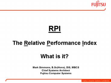 9Fujitsus Transactions Per MinuteRPI TPM vs.