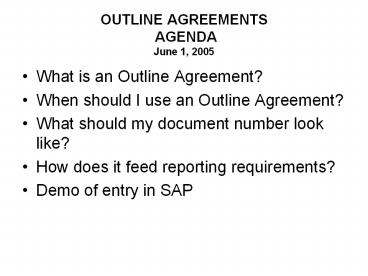 OUTLINE AGREEMENTS AGENDA June 1, 2005 PowerPoint PPT Presentation