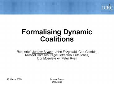 - Budi Arief, Jeremy Bryans, John Fitzgerald, Carl