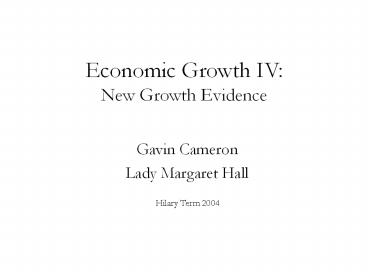 1Economic Growth IV New Growth Evidence