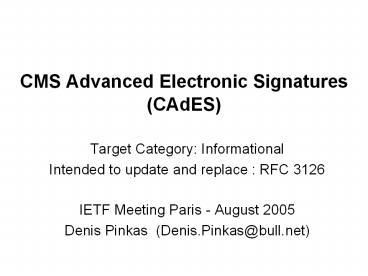 CMS%20Advanced%20Electronic%20Signatures%20(CAdES) PowerPoint PPT Presentation