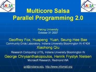 <Notice: Removed> Multicore Salsa Parallel Programming 2.0 PowerPoint PPT Presentation