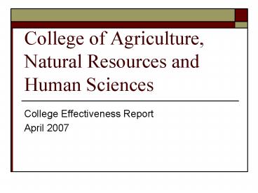 Title: College of Agriculture, Natural Resources and Human Sciences