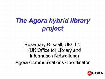 • Agora web pages lthttp//hosted.ukoln.ac.uk/agora/