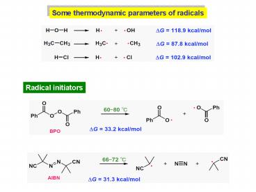 Some thermodynamic parameters of radicals PowerPoint PPT Presentation