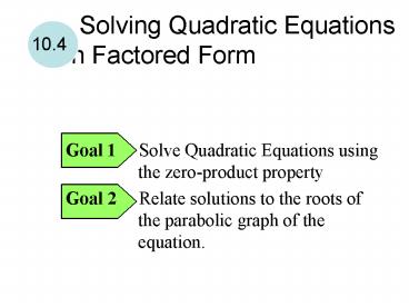 Solving Quadratic Equations in Factored Form PowerPoint PPT Presentation