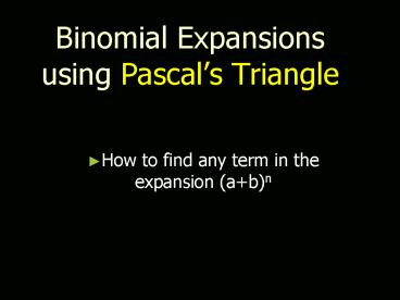 Binomial Expansions using Pascals Triangle PowerPoint PPT Presentation