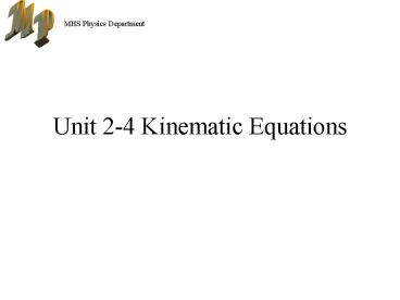 Title: Unit 2-4 Kinematic Equations