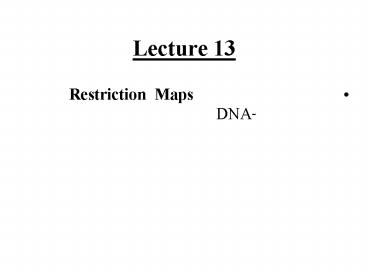 Restriction Maps DNA ' PowerPoint PPT Presentation