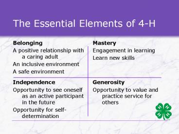 <Notice: Removed> The Essential Elements of 4-H PowerPoint PPT Presentation