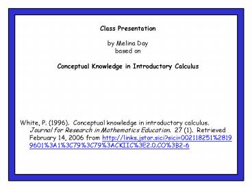 Title: White, P' 1996' Conceptual knowledge in introductory calculus'