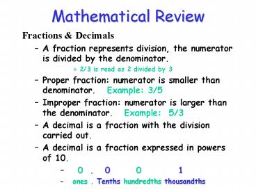 denominator. Example 5/3 - A decimal is a fraction with the division carried