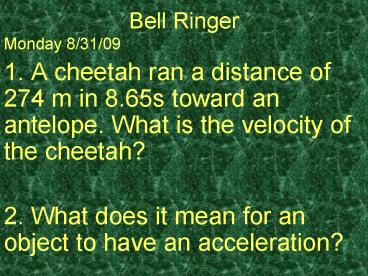 • 1. A cheetah ran a distance of 274 m in 8.65s