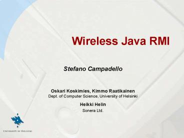 • Partners Nokia (M.P. and R.C.), Sonera and Tekes.