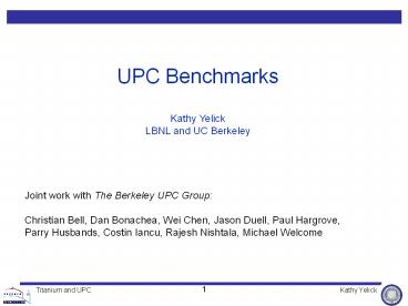 1UPC Benchmarks Kathy Yelick LBNL and UC Berkeley