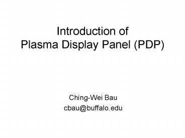 <Notice: Removed> Introduction of Plasma Display Panel (PDP) PowerPoint PPT Presentation