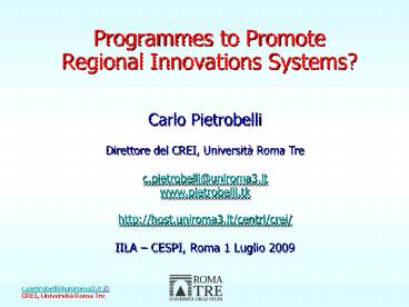 <Notice: Removed> Programmes to Promote Regional Innovations Systems? PowerPoint PPT Presentation