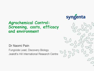 Title: Agrochemical Control: Screening, costs, efficacy and environment