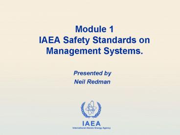 Title: Module 1 IAEA Safety Standards on Management Systems'