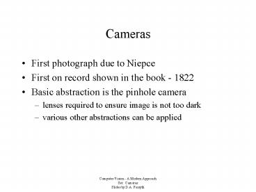 - Basic abstraction is the pinhole camera