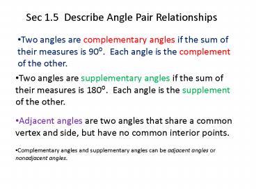 Sec 1'5 Describe Angle Pair Relationships PowerPoint PPT Presentation