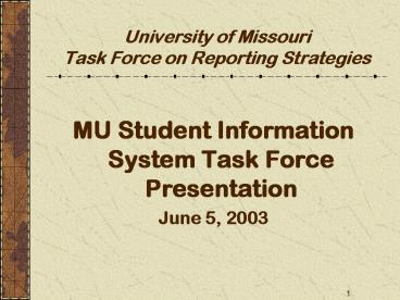 Title: MU Student Information System Task Force Presentation