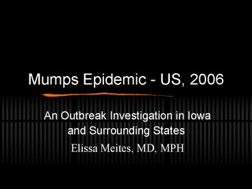Mumps Epidemic US, 2006 PowerPoint PPT Presentation