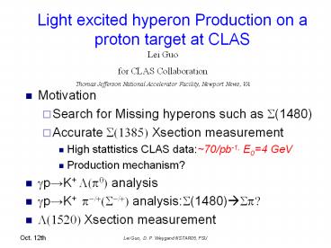 Lei Guo for CLAS Collaboration Thomas Jefferson