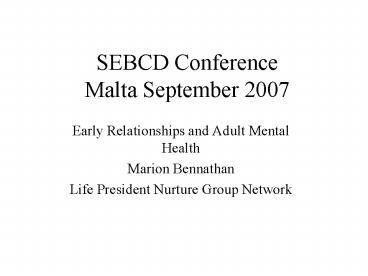 <Notice: Removed> SEBCD Conference Malta September 2007 PowerPoint PPT Presentation