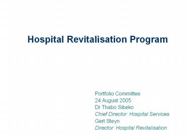 Title: Hospital Revitalisation Program
