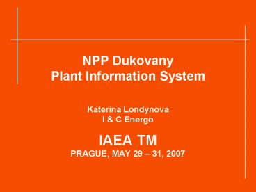 NPP Dukovany Plant Information System Katerina Londynova I PowerPoint PPT Presentation