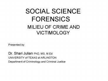 Title: SOCIAL SCIENCE FORENSICS