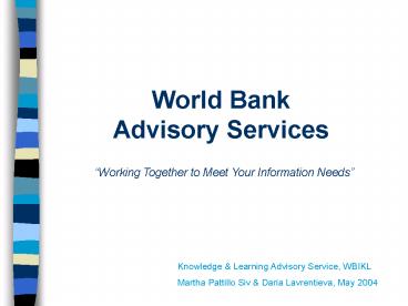 <Notice: Removed> World Bank Advisory Services PowerPoint PPT Presentation